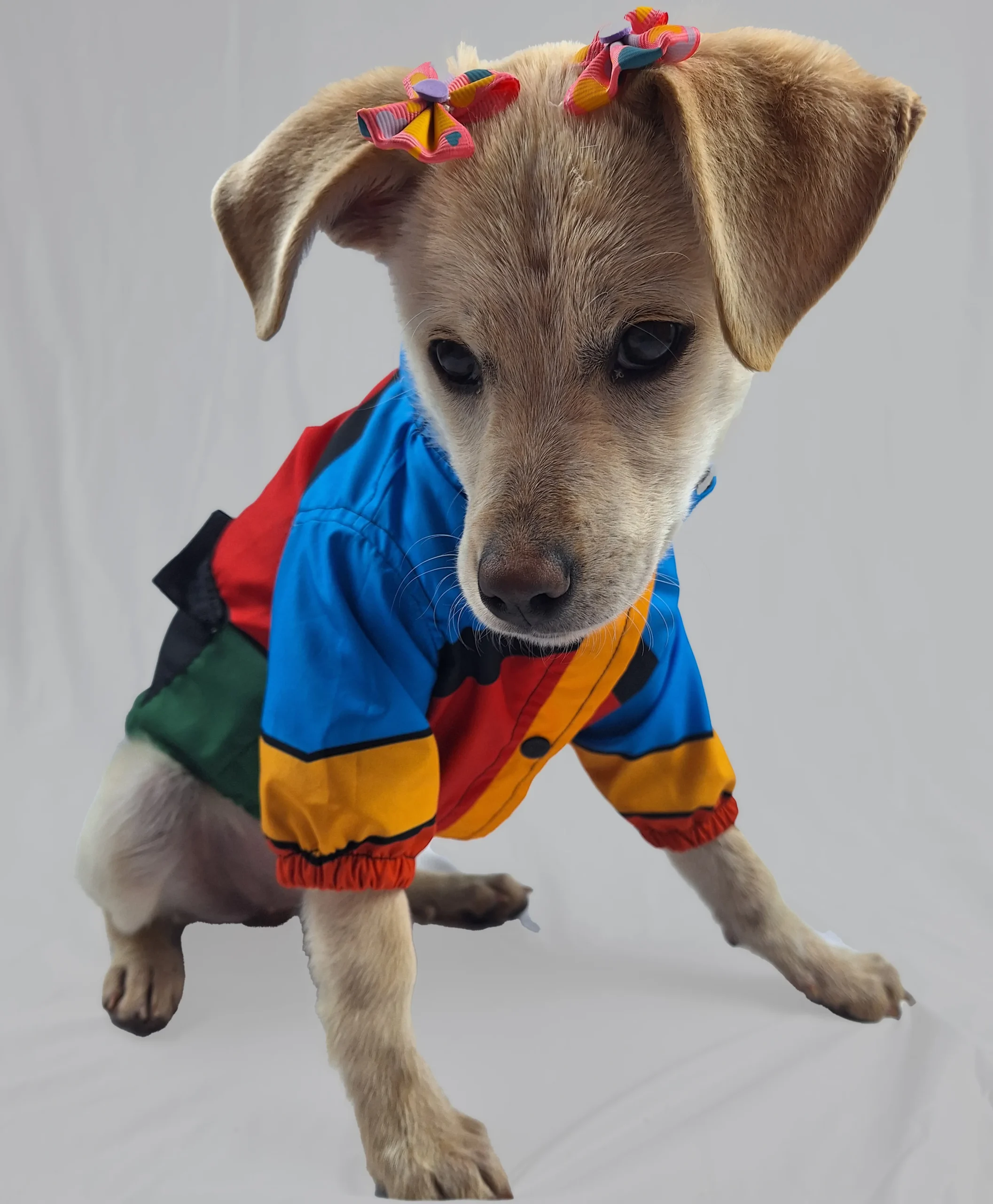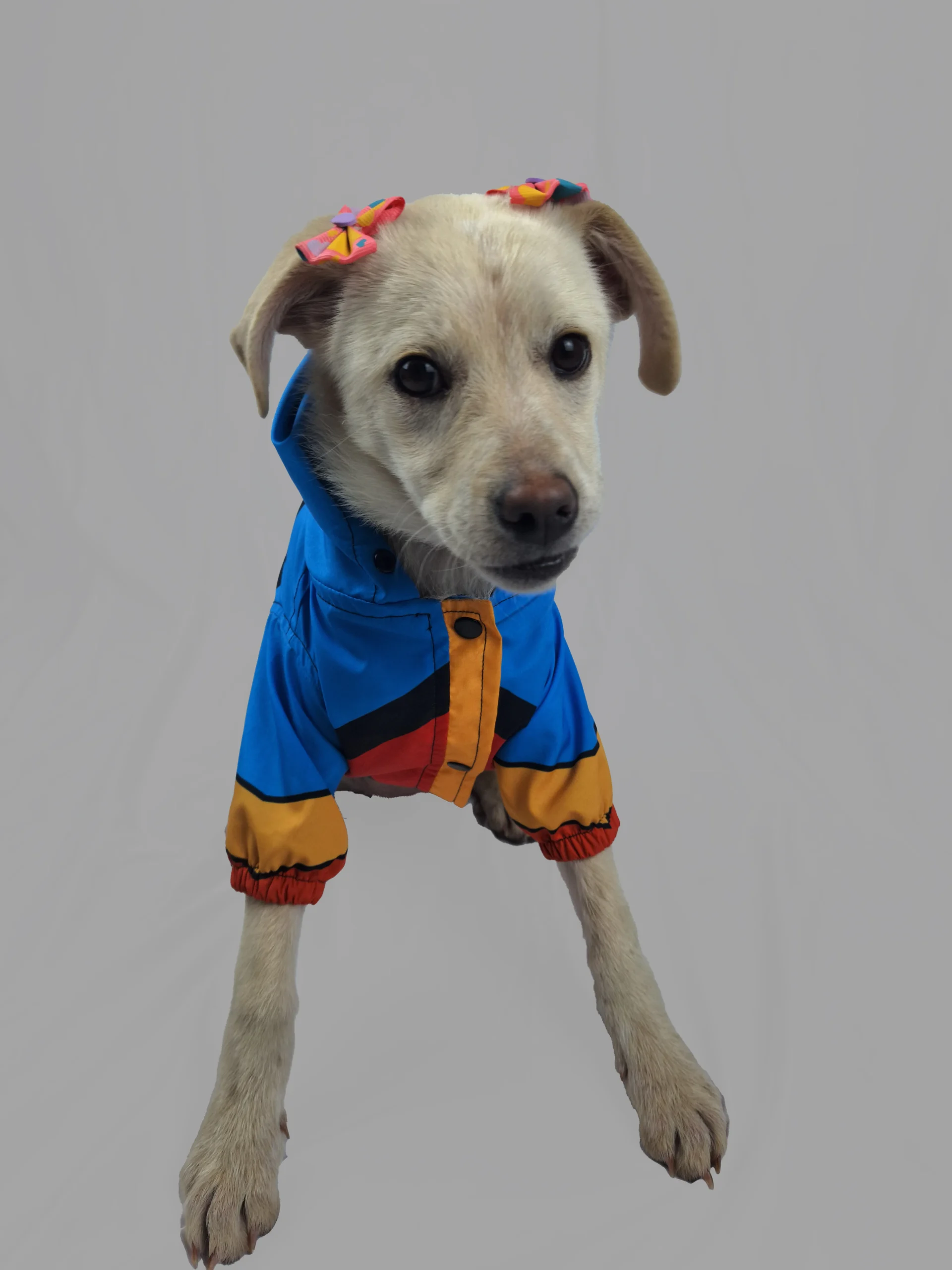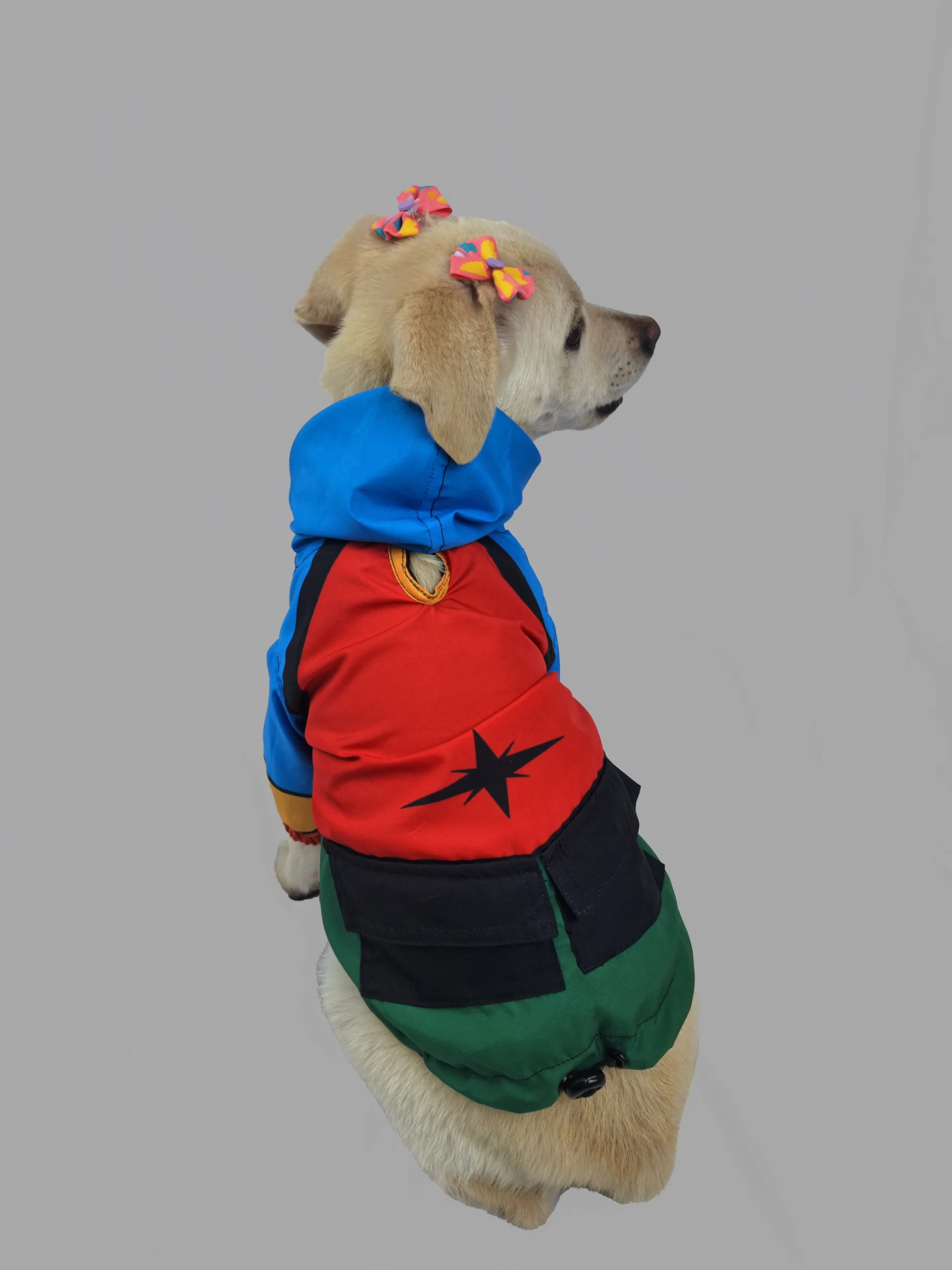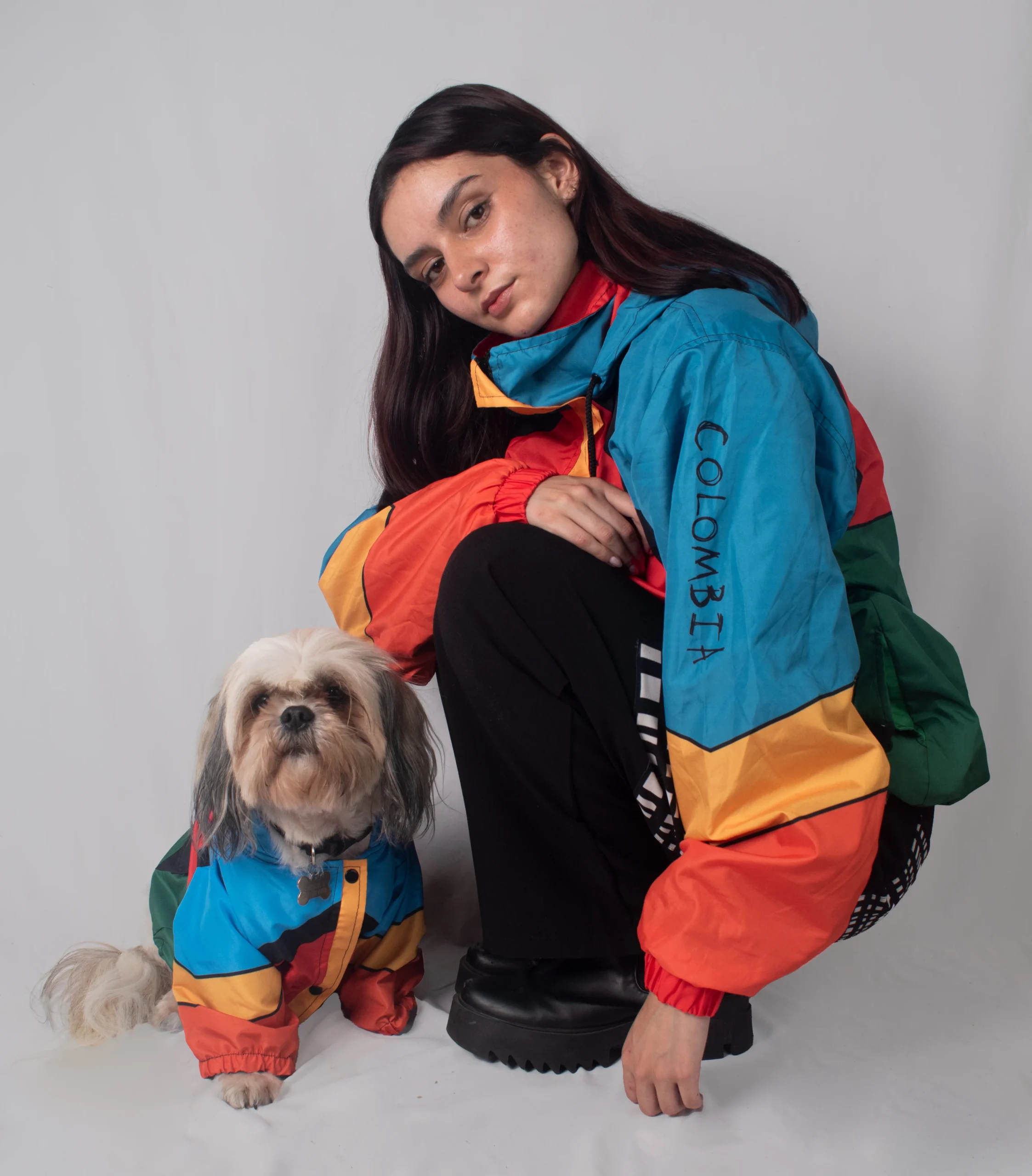 Chaqueta para perro sostenible impermeable, elaborada de botellas recicladas.