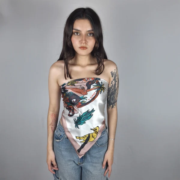Úsala en el cuello, cabeza, muñeca, bolso o como top. Ideal para climas cálidos y para darle un toque único a cualquier outfit.